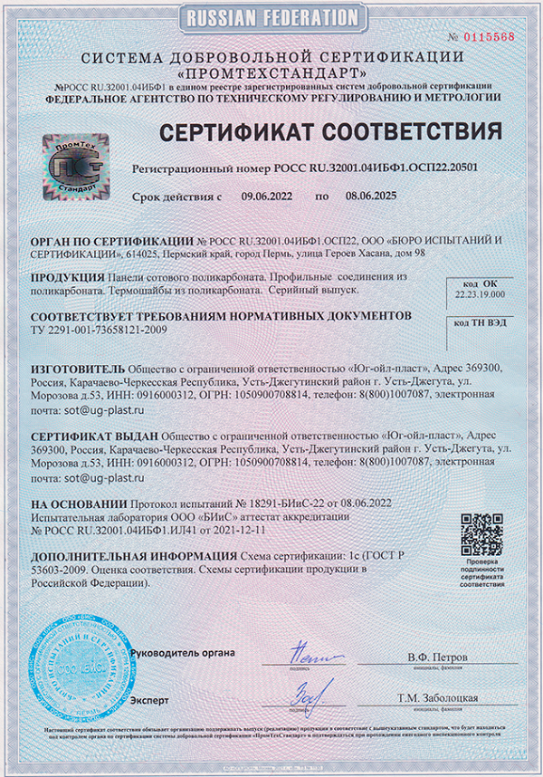 Подтвержденное сертификатами и действующими ГОСТ