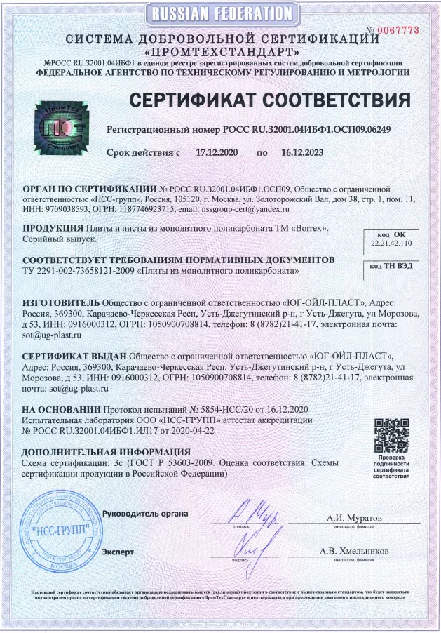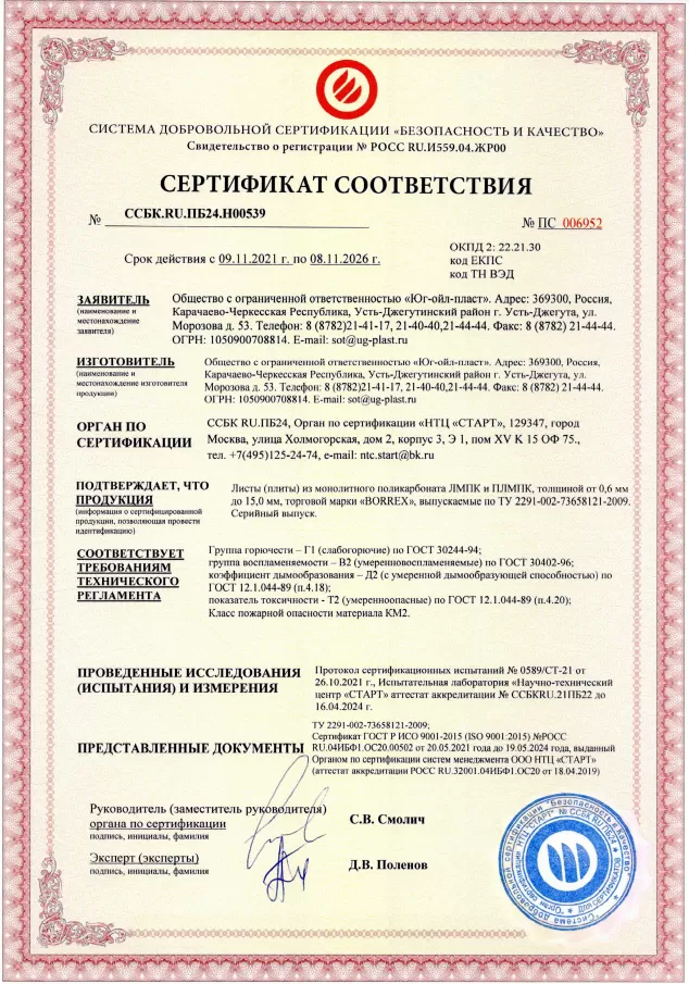 Подтвержденное сертификатами и действующими ГОСТ