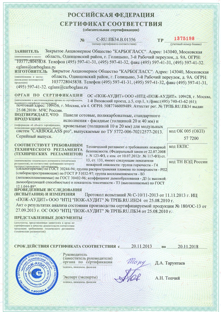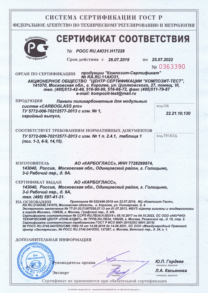 Подтвержденное сертификатами и действующими ГОСТ