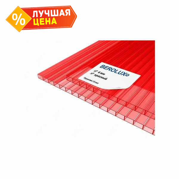 Сотовый поликарбонат 6 мм BEROLUX красный 2100х12000 мм