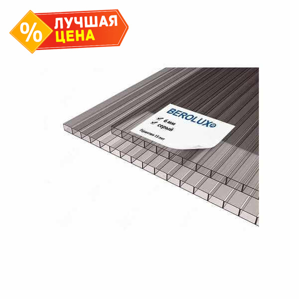 Сотовый поликарбонат 6 мм BEROLUX серый 2100х12000 мм