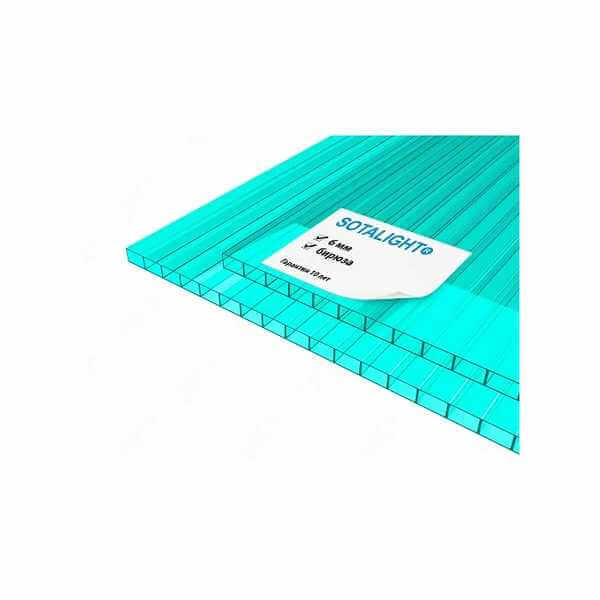 Сотовый поликарбонат 6 мм SOTALIGHT бирюза 2100х6000 мм - это прочный и легкий материал, который отлично подходит для использования в различных строительных и дизайнерских проектах. Поликарбонат обладает высокой прочностью и устойчивостью к воздействию внешних факторов, что делает его идеальным выбором для создания надежных и долговечных конструкций.