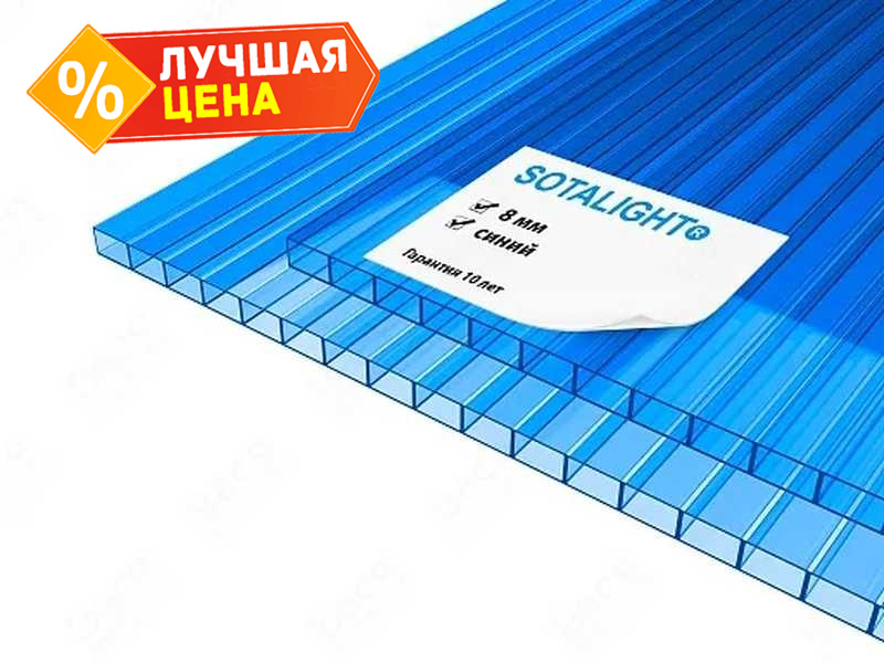Сотовый поликарбонат 8 мм SOTALIGHT синий 2100х12000 мм
