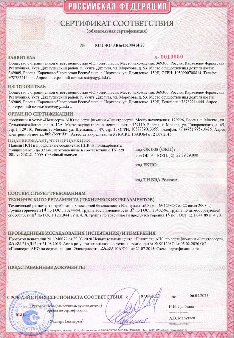 Подтвержденное сертификатами и действующими ГОСТ