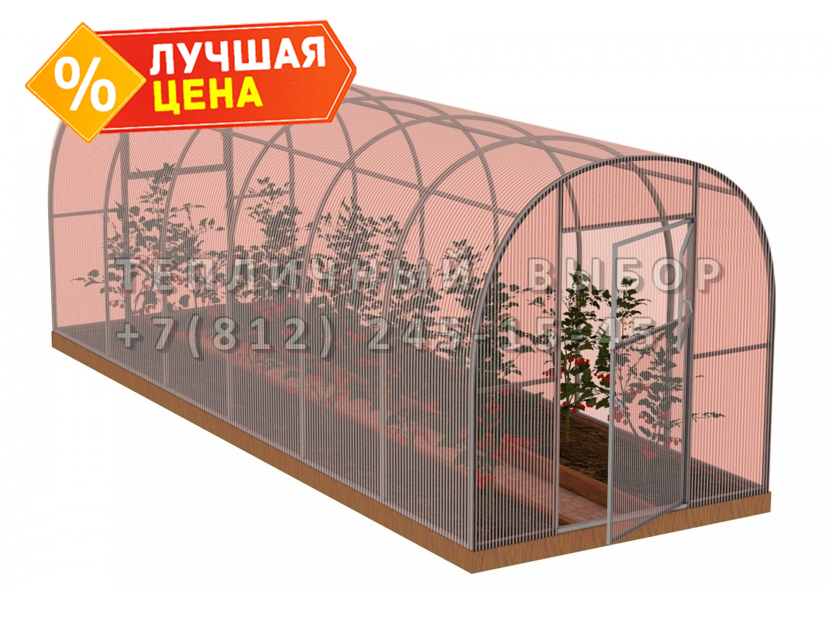 Теплица из поликарбоната-фито Усиленная Арочная 2,1х12 h=2 м профиль 20х20 мм