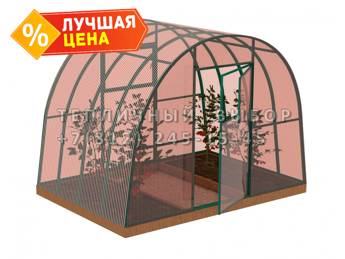 Теплица из поликарбоната-фито Усиленная Арочная 2,5х2 h=2 м профиль 30х30 мм Зеленый