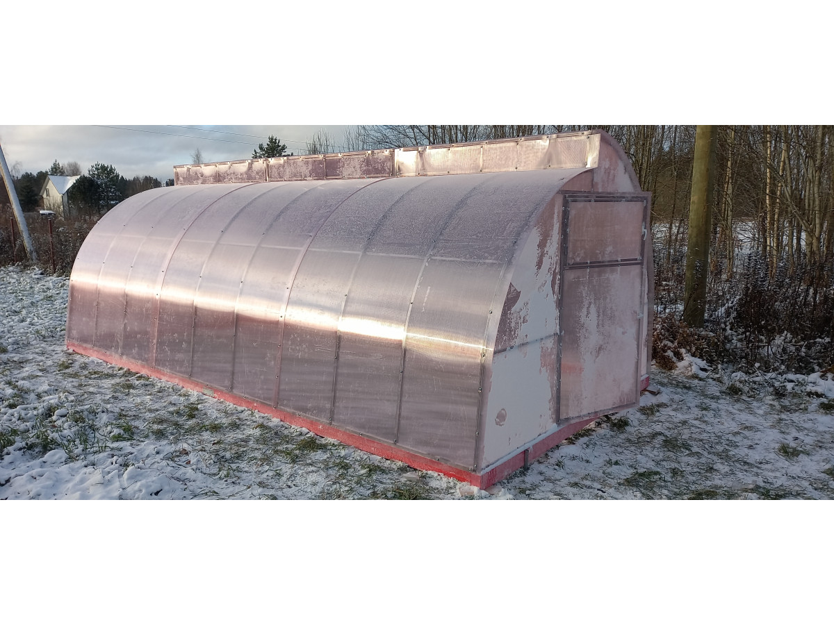 • поликарбонат толщиной 4 мм (в транспортном состоянии свёрнутые в рулон листы имеют диаметр до 80 см и длину 2.1 м);