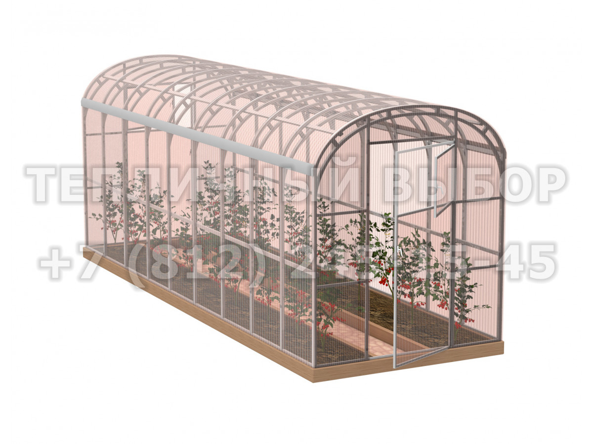 Теплица из поликарбоната-фито Усиленная Прямостенная 2,1х6 h=2.1 м профиль 20х40 мм