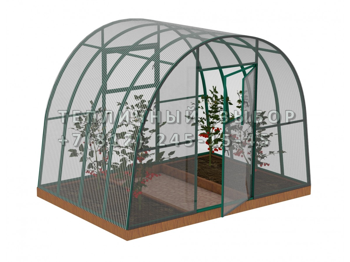 Теплица из поликарбоната Усиленная Арочная 3х2 h=2.1 м профиль 30х30 мм Зеленый