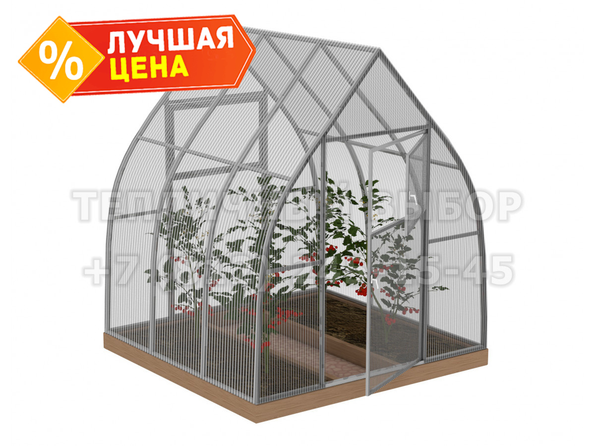 Теплица из поликарбоната Усиленная Капелька 2,1х2 h=2.3 м профиль 25х25 мм